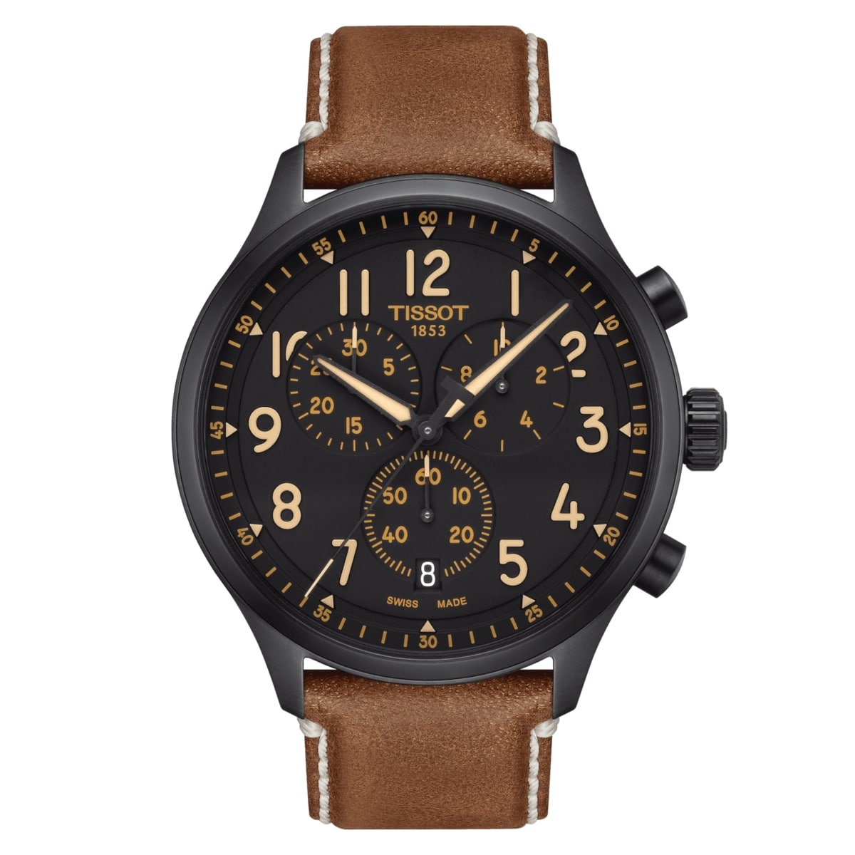 Tissot Chrono XL - T1166173605203 herenhorloge met quartz binnenwerk. De kast van dit model is vervaardigd uit roestvrij staal met zwarte PVD coating en is 10 ATM (100m) water resistant. Dit horloge heeft een bruin leder band. Het uurwerk is analoog en er wordt gebruik gemaakt van saffierglas.